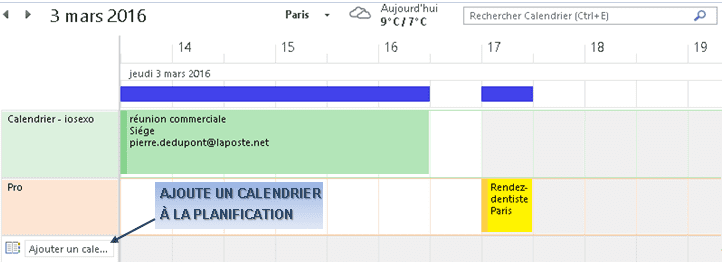 en superposition les deux calendriers nommés "personnel" et "professionnel" puis