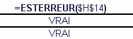 Cette fonction affiche la valeur VRAI si la cellule a une valeur # (erreur) et FAUX dans le cas contraire sauf valeur NA (non disponible).