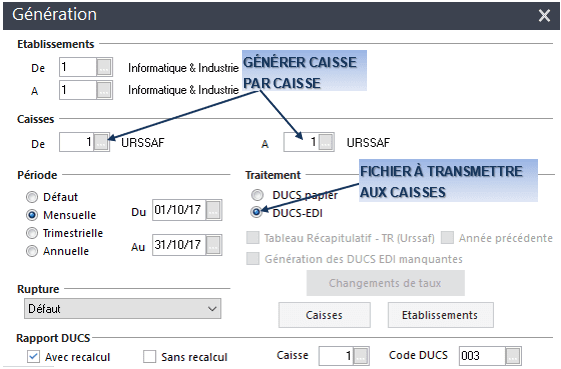 Il faut aussi vérifier les paramètres des caisses de cotisation, notamment que chacune est bien rattachée à une caisse de regroupement.