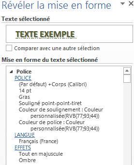 L'inspecteur de style va permettre d'afficher la mise en forme affectée à une sélection.