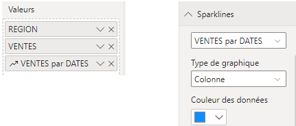 Créer une table des ventes par région et dans la colonne vente, créer un sparkline en colonne montrant l'évolution sur l'année