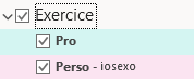 Faire glisser les calendriers "perso" et "pro" dans le groupe "exercice"