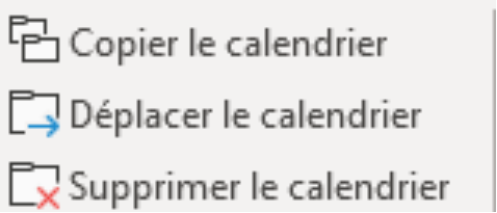 Plusieurs calendriers peuvent coexister en fonction des besoins. Le calendrier coché est affiché. Tout calendrier peut être copié, déplacé, supprimé ou partagé.