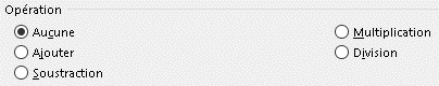 Excel permet d'exécuter directement des opérations entre des plages différentes, sans passer par une formule mais seules figurent alors dans la plage cible les valeurs résultant de ces calculs.