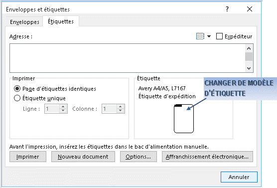 Word permet d'imprimer facilement une étiquette unique.