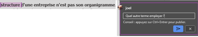Insérer le commentaire suivant "Quel autre terme employer ?"