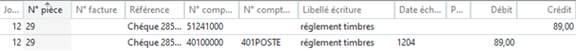 indiquer le journal, la date, le libellé, le n° de facture et la référence