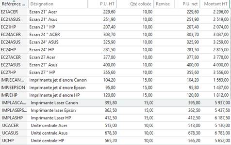 saisir les premieres lettres de la référence d'article puis <tab> affiche la liste