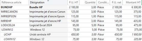 Puis le détail du devis.