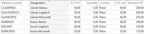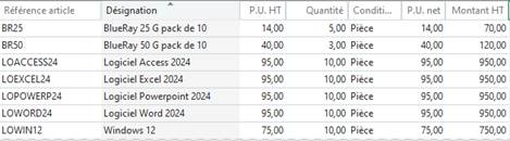 Fourn.: Idasoft - Date Achat : 19/02- Date Liv : 26/02- acheteur : Petit - Exp : France Express