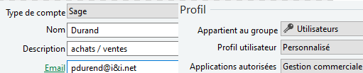 Pour l'utilisateur Durand, paramétrer les autorisations suivantes :