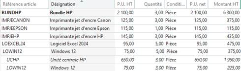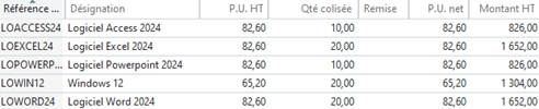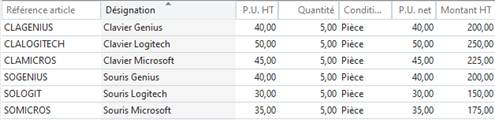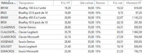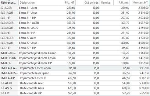 Accepter les 3 premiers devis tels quels puis le dernier en modifiant le prix des claviers Logitech à 40 € et leur quantité à 8