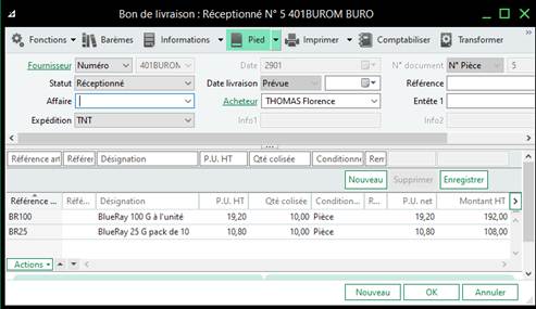 Fourn.: Idasoft - Date Achat : 19/02- Date Liv : 26/02- acheteur : Petit - Exp : France Express