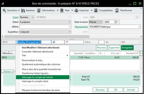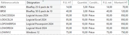 Créer une commande identique à la commande "1" mais uniquement les articles "Blu-ray 100" et "Blu-ray 25" et avec une quantité de "20" pour chacun![]()